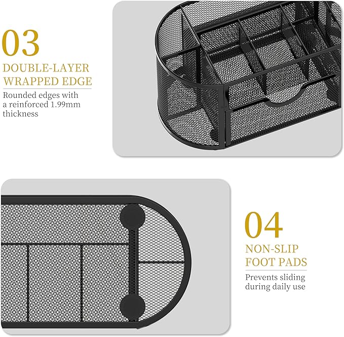 - [ 𝐏𝐫𝐨𝐝𝐮𝐜𝐭 𝐒𝐢𝐳𝐞 ] Mesh pen holder size 8.6 L x 4.3 W x 4.1H inch,small drawer measures 4.9 L x 4.1 W x 2.3H.