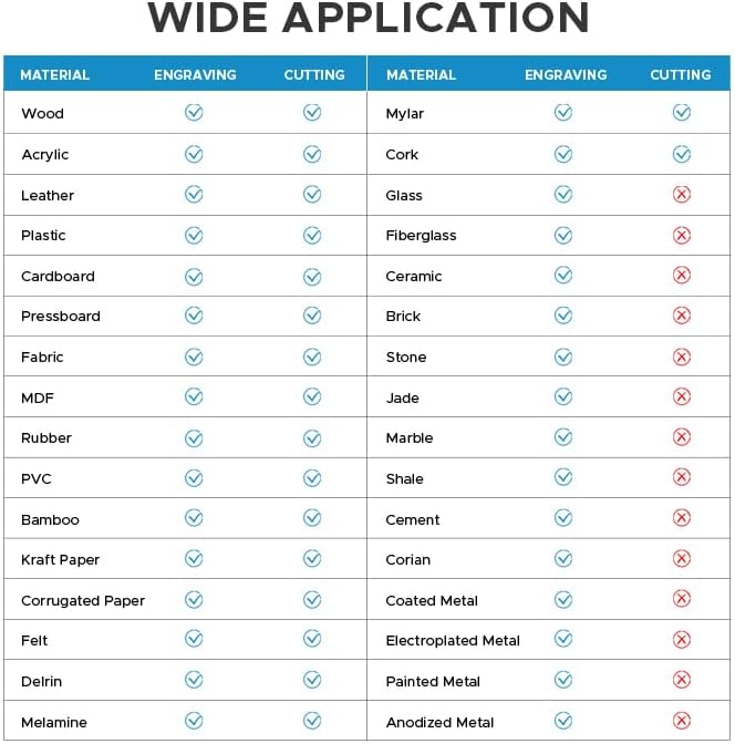- Design, Engrave, & Impress: With OMTech's powerful 90W CO2 laser engraver, you can effortlessly engrave up to 0.4" deep on non-metallic materials, bringing your creative visions to life. Enjoy impressive speeds of up to 600 mm/s and a lifespan of up to 12,000 hours, ensuring reliable performance for all your projects while allowing you to work with confidence