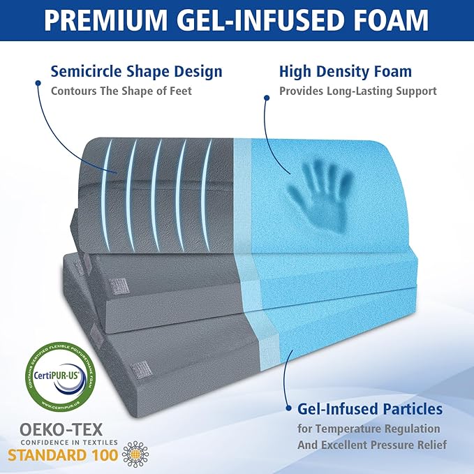 - [Supportive High Density Foam] The foot rest under desk utilizes gel-infused high-density foam. Compared to ordinary foam, high-density foam provides better support, less deformation, and greater resilience. Additionally, the filled gel particles effectively regulate temperature and pressure relief.