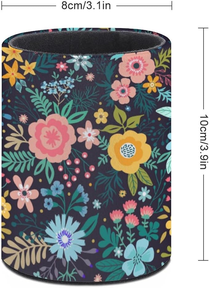Flowers Floral Pen Holder Pencil Organizer Cute Pencil Cup Desk Decor Makeup Brush Holder PU Multifunctional Office Suppliesfor Home Classroom School