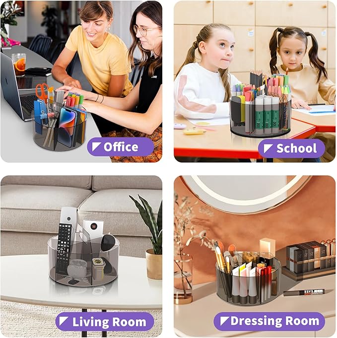 - Sturdy Material: This spinning pen holder is made of high-quality sturdy acrylic material. And this material has no bad smell. Transparent acrylic, the fully transparent field of vision, can quickly get what you want. Simple design is suitable for all kinds of places, suitable for living room,office,study,classroom, etc.