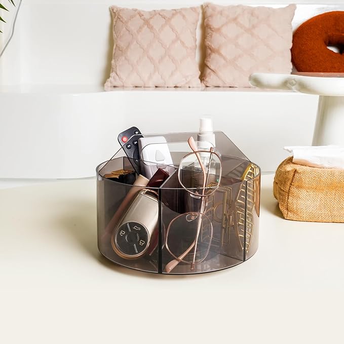Acrylic Pen Organizer, 360 Degree Rotating Desk Organizer with 6 Compartments Crayon Holder for Office, School, Home, Art Supply, Grey