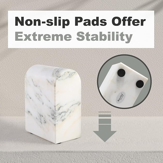 Koville Natural Marble Bookends for Shelves, 13LBS Ultra Heavy Duty Marble Book Holders Organizer, Non-Slip Book Ends, Apartment Decor for Movies/CDs/Video Games