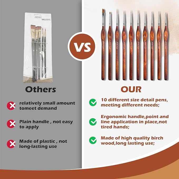 - IDEAL FOR PRECISION PAINTING: Miniature brushes are perfect for miniatures figurines, ultra fine detail painting, army figures. You can use detail brush set as paint by number brushes, hobby paint brushes, plastic model paint brushes,express yourself through any creation and craft! The mini paintbrushes are perfect for your loved one or a treat to yourself !