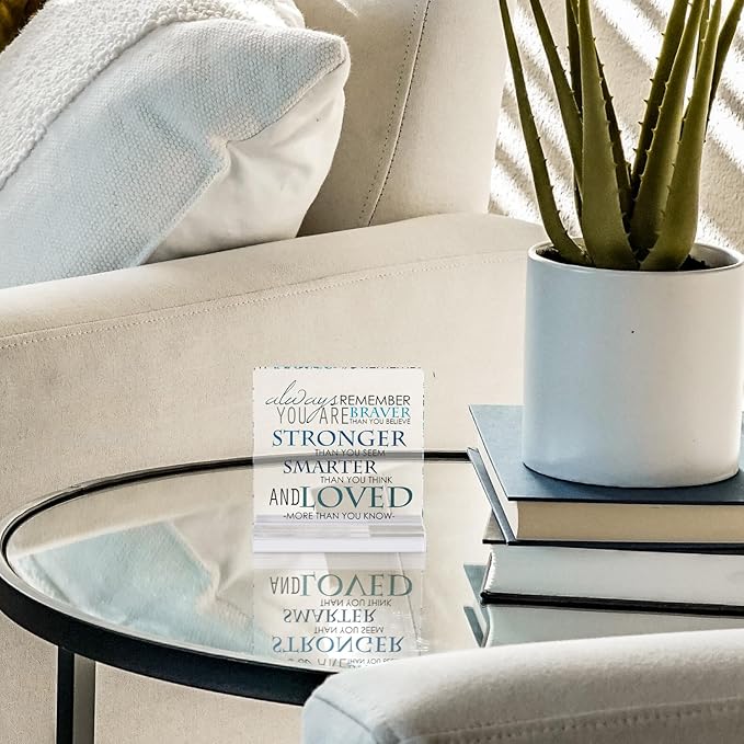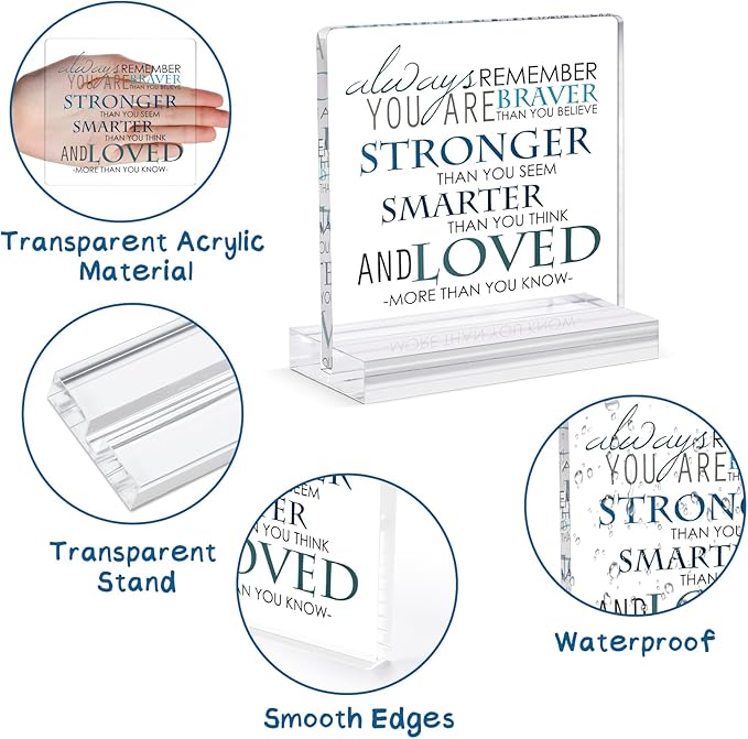 - 『DESIGN』"Always Remember You are Braver Than You Believe, Stronger Than You Seem, Smarter Than you Think And Love More Than You know.”, the motivational quote message is designed on an elegant transparent acrylic plaque, and comes with sturdy acrylic stand.