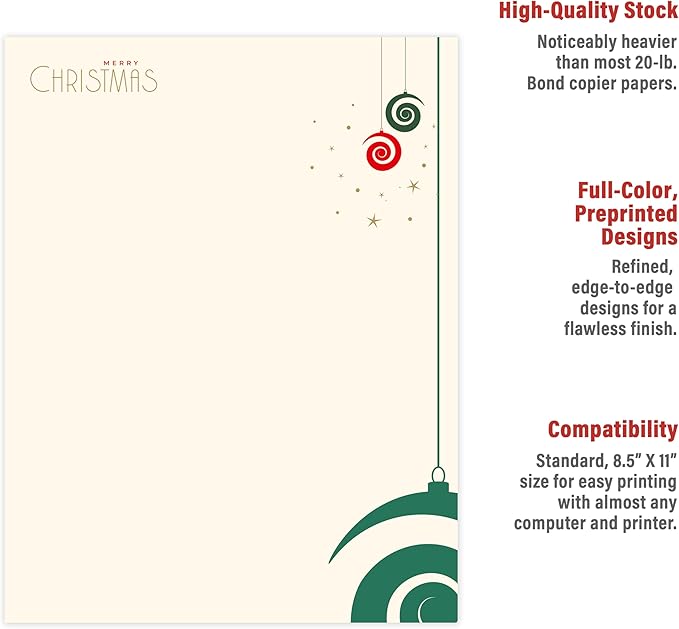 - Includes 60 Sheets: Enjoy 60 sheets of beautifully crafted 8.5" x 11" decorative letterhead. Each sheet is a canvas for your holiday messages.
