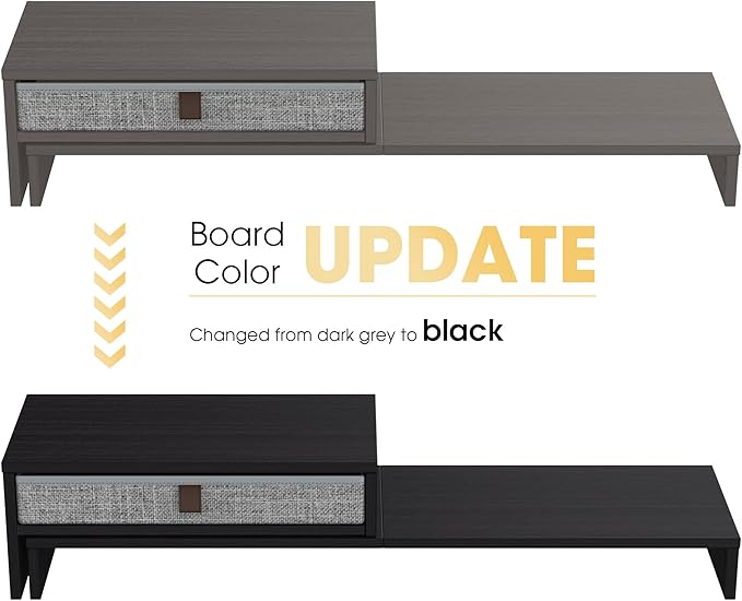 - 【Perfect Desktop Organizer】Our computer monitor riser includes 9.25 inches practicality slide-out drawers for storing items like post-it notes, writing utensils and mobile devices. The keyboard can be placed under the bracket, save more space on your desk.