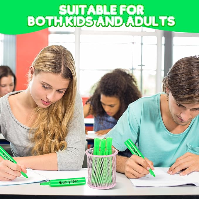 - Convenient Chisel Tip Design: our green highlighters come with a good chisel tip offering broad highlighting or fine underlining and allow you for creating thick and thin lines; Secure fitting caps can protect the tips when not in use