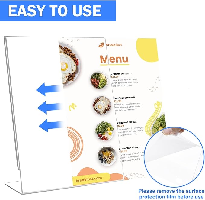 - Easy to Install: The plastic sign holder 8.5 x 11 standing is a one-piece design, no need to assemble it, just insert the picture or poster directly into the sign holder, which is very simple and saves you precious time