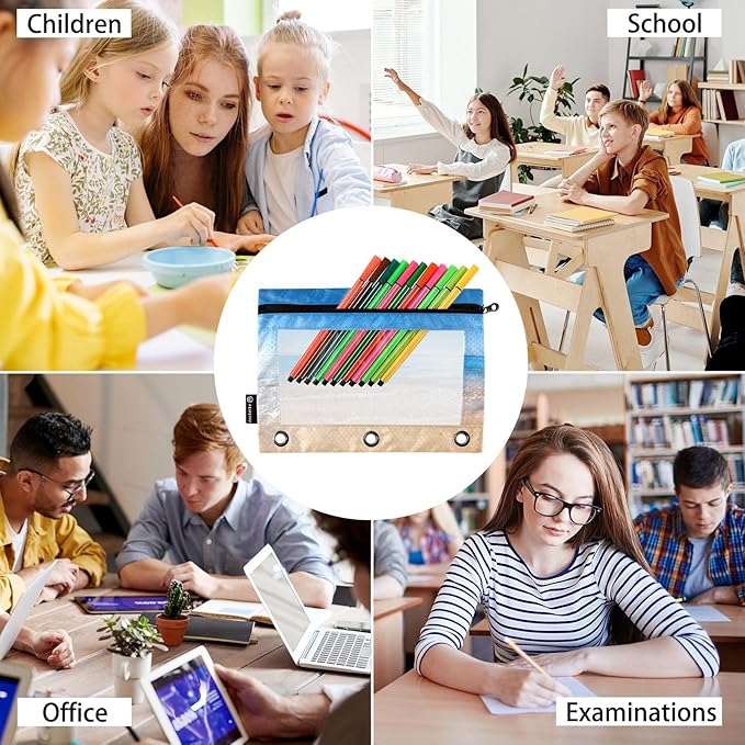 - Clear PVC Window Pencil Bags: Clear PVC window design, allows you to see items inside, helps you to find your things easily.Zippered pencil pouches have 3 holes,suitable for standard 3 ring binders.