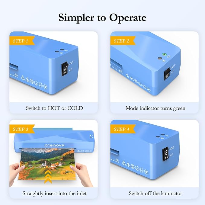- 🆗COLD Mode: Specially designed for heat-sensitive materials, uses with self-adhesive pouches. You can use the cold system to laminate temperature-sensitive items.