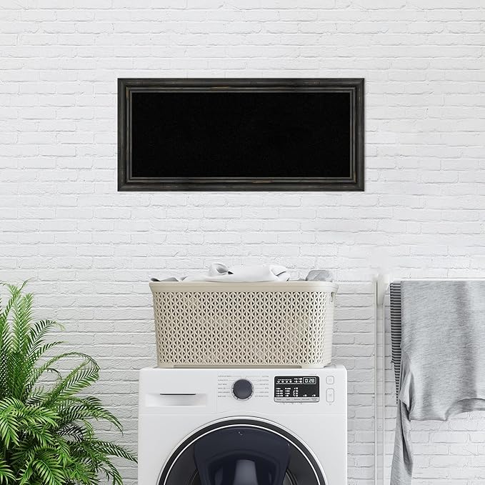 Amanti Art Black Cork Board for Wall, 15x33 Vision Board with Black Wood Frame, Medium Corkboard Office Decor for Home Organization, Country Rustic Corkboard Pinboard to Display Items for Home