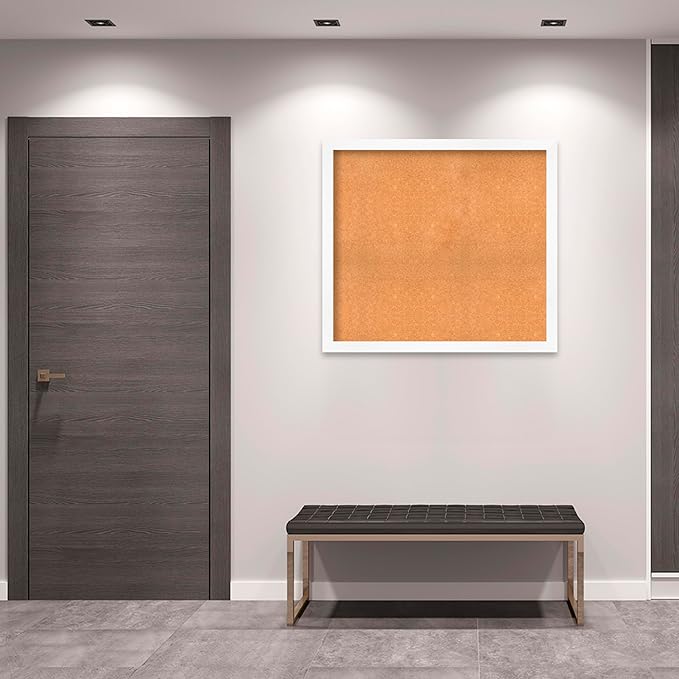 Amanti Art Natural Cork Board for Wall, 39x43 Vision Board with White Frame, Oversize Corkboard Office Decor for Home Organization, Modern Corkboard Pinboard to Display Items for Home Organization in