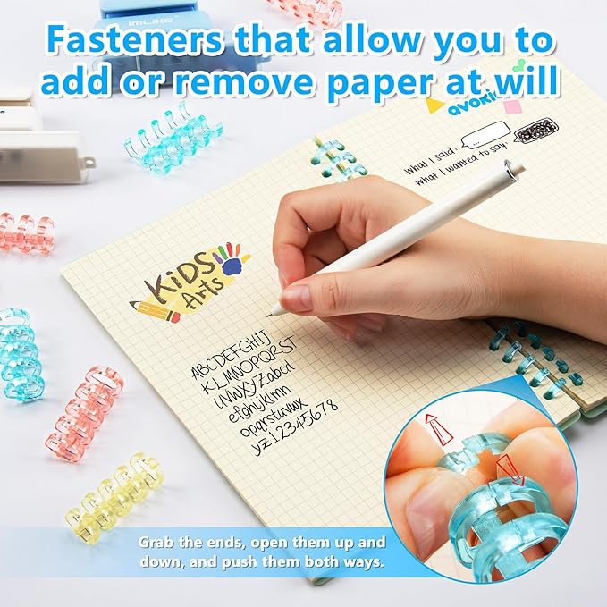 - 【Back-to-School Season Gift】Designed to inspire creativity, our binding machine is a popular choice during the back-to-school season. Children can craft their own beautiful loose-leaf books, word books, and planners. The binding strip expands up to 180 degrees, providing easy writing and note-taking. It's the perfect gift for your child during this special time of year.