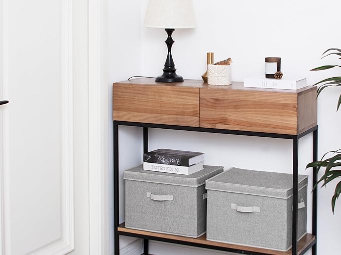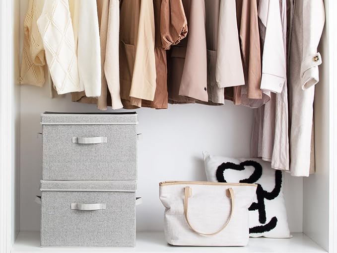 StorageWorks Fabric Storage Bins with Lid, Decorative Storage Boxes for Shelves, Stackable Closet Organizer Basket with Handles, Jumbo, Gray, 2-Pack