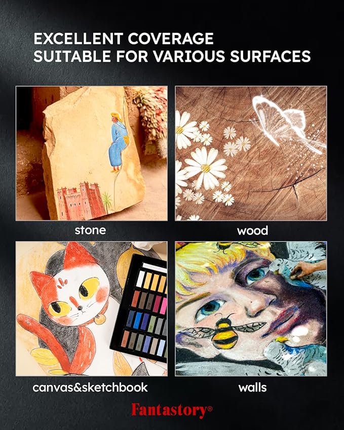 - For Various Art Styless: The soft texture of these art chalk allows smooth drawing, blending, and coloring on paper as well as traditional boards, blackboards, and even sidewalks. Compared to Oil Pastels, Chalk Pastels achieve more impressive and vibrant artistic effects, thanks to its finely textured pastel particles. Fantastory pastels are a versatile tool for artists.