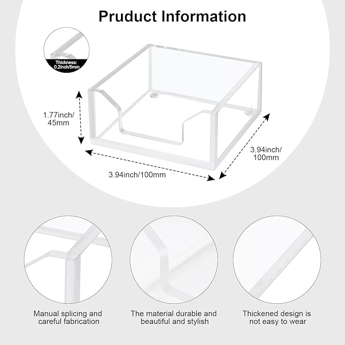 - Transparent Design: The clear acrylic sticky note holder is modern and formal in appearance, which will show your taste, besides the clear design are convenient for you to notice the amount of sticky notes left in case of shortage, easy access
