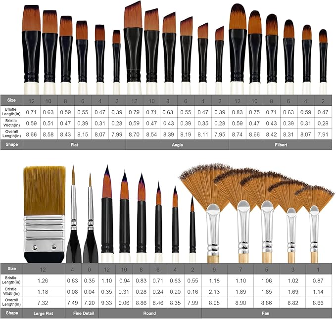 - 32 Pieces Brushes - Paint brushes for acrylic painting set includes 32 brushes in 6 series. Whether it's for extreme details or large areas, these round, square, fan and flat brushes work well