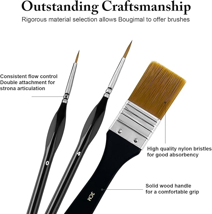 - Suitable For All Types Of Painting - The Bougimal paint brushes for canvas painting set can be used for more than 90 % of painting needs. 32 brushes are ideal for use in watercolor, oil, acrylic, ceramic and stone. Ideal for artists and beginners