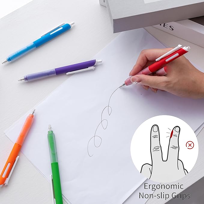 - Super Soft Non-slip Grip: Features grip bring a super soft and comfortable touch feeling which make each ballpoint pen easy to hold
