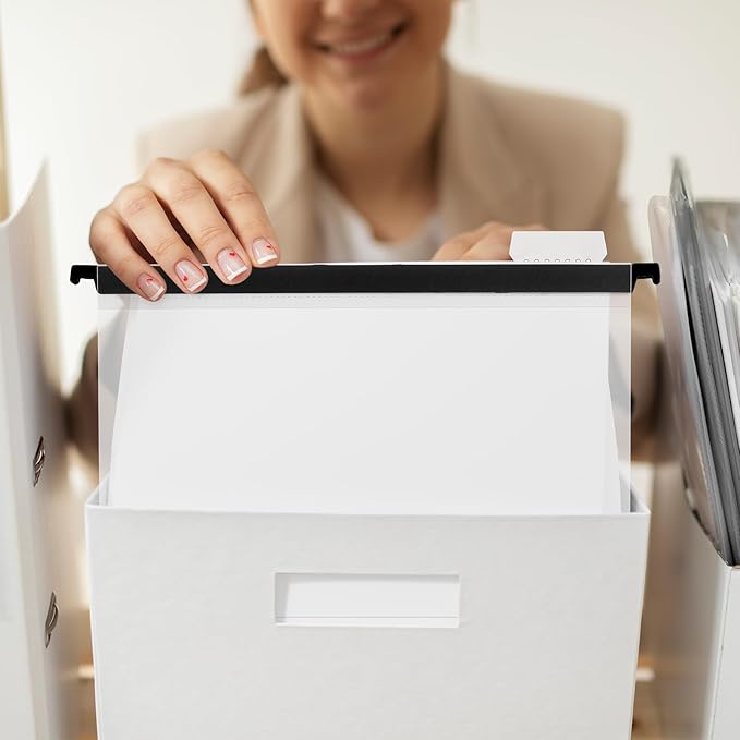 - 4.Durable Material:The material of pp plastic ensures that the filing cabinet folders hanging is not easy to break and deform,and can be used for a long time,and the super strong hook rod allows the hanging folder to slide on the rail,so that the hanging paper folder stays on the track,slides easily and will not curved,supports you to store a large number of documents.