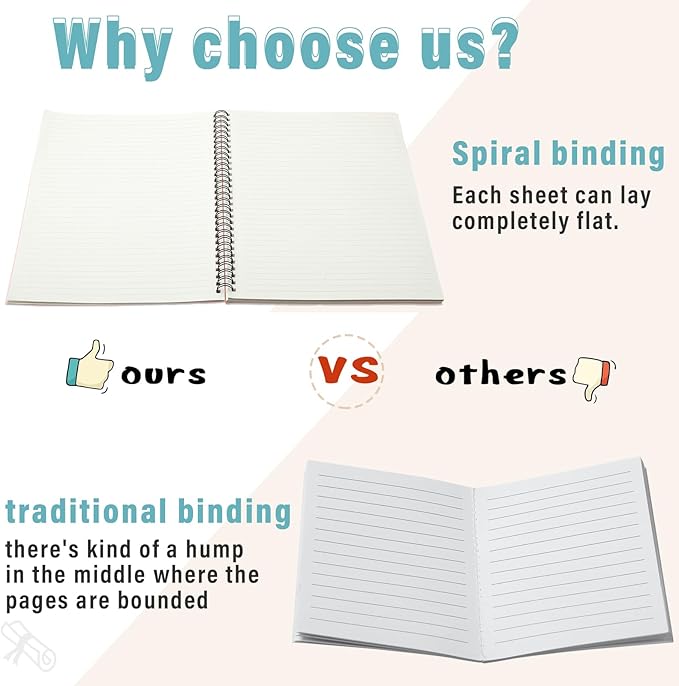 - Side Spiral Binding: each of office spiral notebooks has side spiral binding design, and you can turn the paper over 180 degrees without embarrassing situations such as paper falling or wrinkling; And you can tear off the paper at will, keeping the paper intact and leaving no trace, providing more comfortable writing conditions for left and right hand users