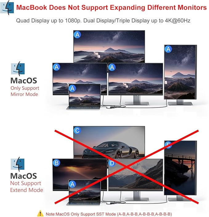 - Dual and Triple 4K Display Multiple Adapter: This docking station dual monitor can easily achieve dual monitors,triple displays and quad monitors for Windows laptop.While single use HDMI/DP1/2resolution up to 【4K@60Hz, single use VGA resolution up to 1080@60Hz. When using DP1/2+HDMI, dual monitors will be 4K@60Hz and 4K@30Hz(DP1.4); When using HDMI+DP1+DP2, triple monitors will be 2*4K@60Hz+2K@60Hz (DP1.4); Display output will be 1080P when quadruple displays and multiple monitors with VGA