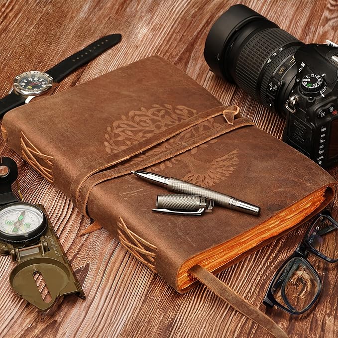 - A PERFECT VINTAGE LEATHER JOURNAL: Looking for a journal that's both practical and stylish? Look no further than our leather journal. Made from Cruelty Free Genuine Buffalo leather which is naturally tanned with Oils & Salt and is Chrome free. These Journals can be used by Men, Women of any Age-group. Each journal is unique due to variations in leather shade and appearance, giving you a one-of-a-kind item to call your own.