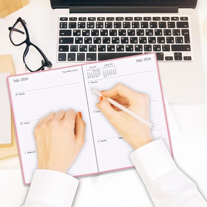 - SUPERIOR QUALITY - Sturdy hardcover to protect the inner pages well. Thick paper to reduce ink leakage, erase fraying and shade issues. Strong metal and lay-flat twin-wire binding. Plan, create and schedule your daily life with this gorgeous weekly & monthly planner