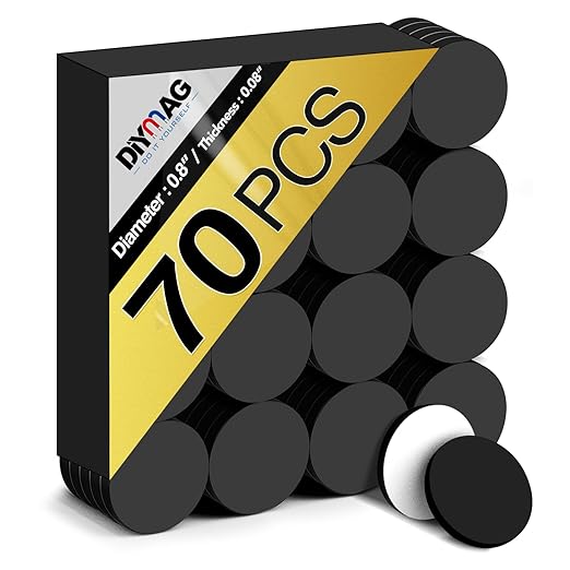DIYMAG Round Magnets with Adhesive Backing for Crafts - 70 PCs Flexible Self Adhesives Magnetic Tape - Flexibility Magnet Sheets for Craft, Photos and Die Storage