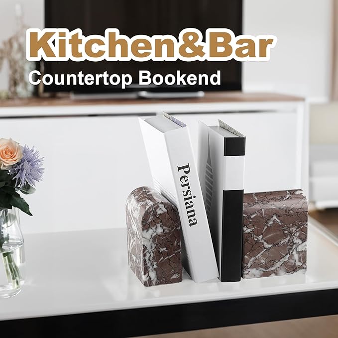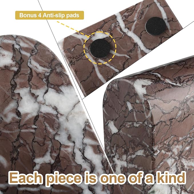 - Sturdy and Solid: This bookends for shelves is weighted 13 lbs and uses natural marble, theyโre strong enough to bookend an entire set of Encyclopedia Britannica. Bonus 4 non-skip feet and unique round arch design support your heavy books more secure in place.