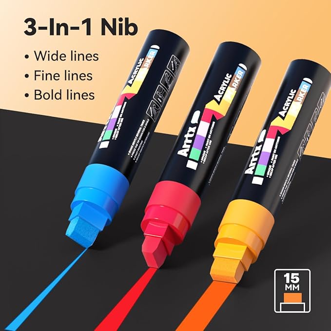 Arrtx 10-Piece Jumbo Acrylic Paint Markers, 15mm Felt Tip, Waterproof, Odorless, Non-Toxic, Multi-Surface Art Supplies for Rock Painting, DIY Crafts Making