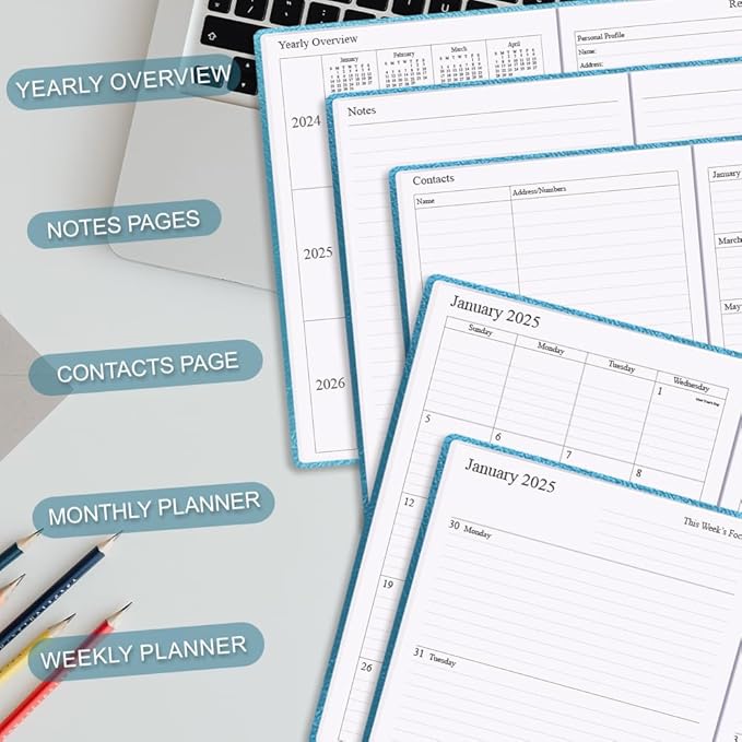 - SUPERIOR QUALITY - Sturdy Pu Leather hardcover to protect the inner pages well. Thick paper to reduce ink leakage, erase fraying and shade issues. Strong metal and lay-flat twin-wire binding. Plan, create and schedule your daily life with this gorgeous weekly & monthly planner