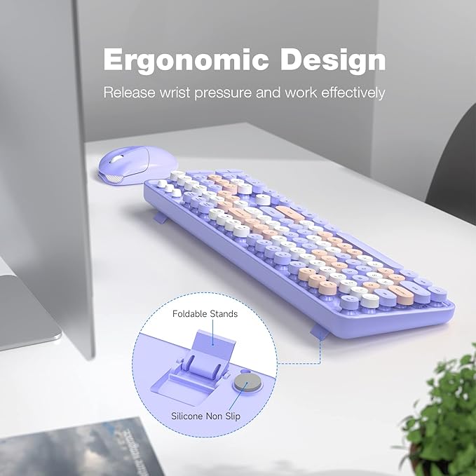 - 【Cute Wireless Keyboard】The inspiration for these cute rounded keys comes from vintage typewriters offering you visual enjoyment and a retro feeling to type. With colorful key caps, make you be distinctive in the office and work full of fun.