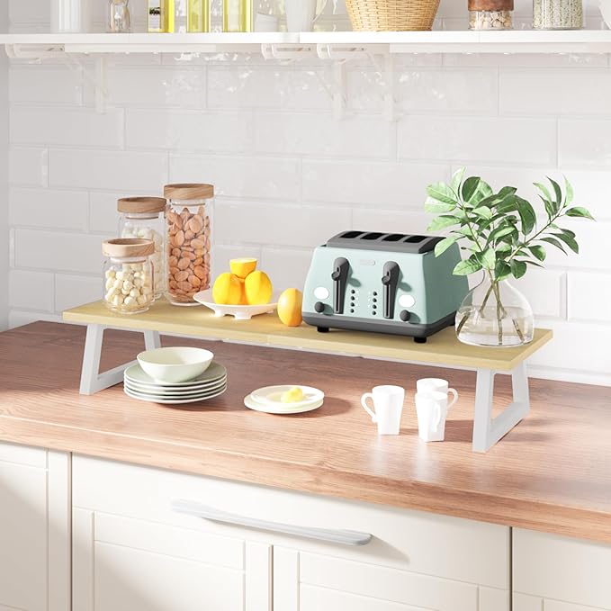 TEAMIX 31.5 inch Dual Monitor Riser - Wide TV Stand for 2 Monitors - Wood & Steel Desktop Riser for Dual Screen Office Desk Organization