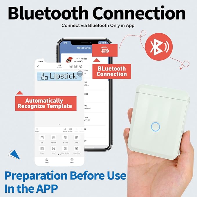 - 【Bluetooth Connection & Compatible with IOS & Android 】 Connect D110 printer in App, not in system settings. Wireless mini label maker can print within 10-meter away from the smartphone connected by Bluetooth 4.0. Compatible with iPhone & Android phone.