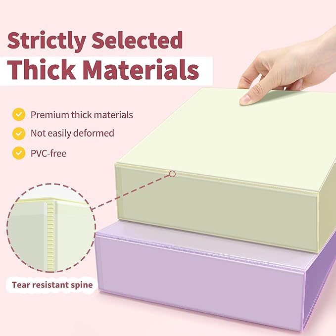 - LONG-TERM PRESERVATION: The 3 inch 3 ring binder with clear pocket cover is made of sturdy material and is moisture and dust resistant. This 3 inch binder is PVC-free and non-stick. The color will always remain without fading during use. The durable rounded edges have a corner grinding process, which effectively prevents wear and tear
