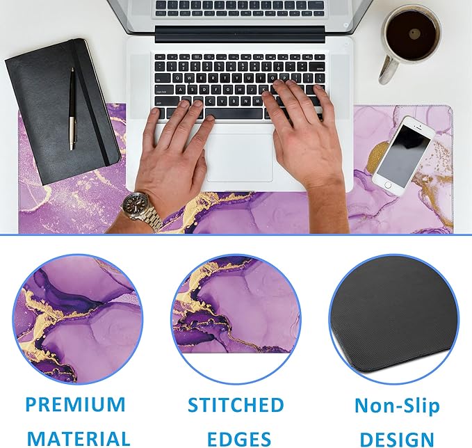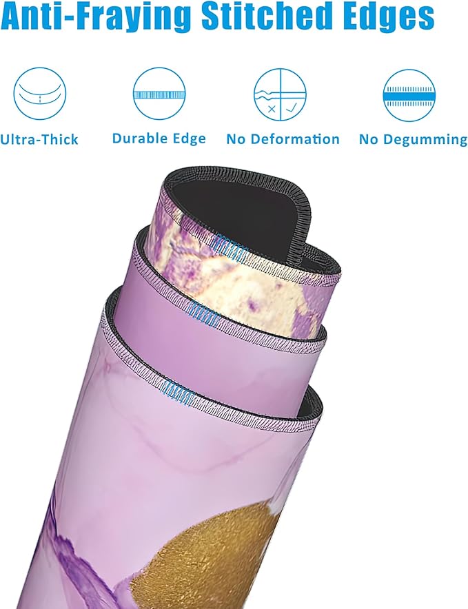 Mouse Pad,Purple Marble Desk Mat for Desktop,Desk Pad with Non-Slip Base and Stitched Edge,Extended Mousepad for Office and Home 35.4X15.7 Inch