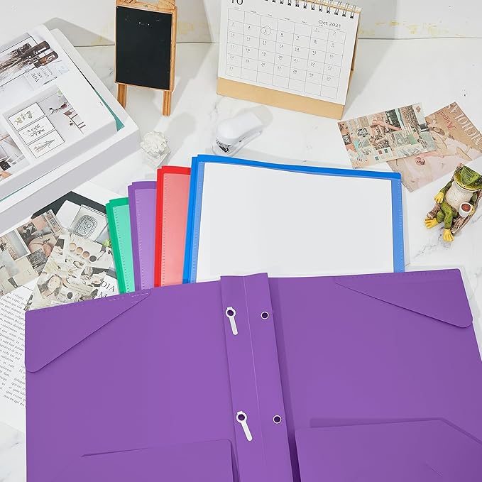 - Practical and Useful: with multicolor plastic folder, you can put your catalog, tables, reports, presentations and more for display; Each one has 2 internal pockets to help organize and store your letter sized paper and documents; There are also 3 prongs to secure your 3-hole loose leaf paper in case it falls, and the card slot can hold your ID card or business card, practical for your daily work