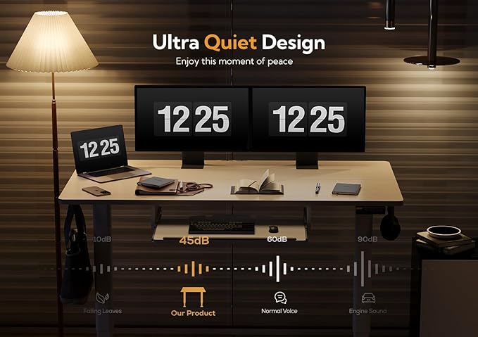 - Ultra-Quiet and Powerful Motor: Claiks custom-designed motors provide robust power for the height-adjustable standing desks. With noise levels as low as 45 decibels, you can enjoy smooth and quiet adjustments, enhancing your workspace without any disruptions