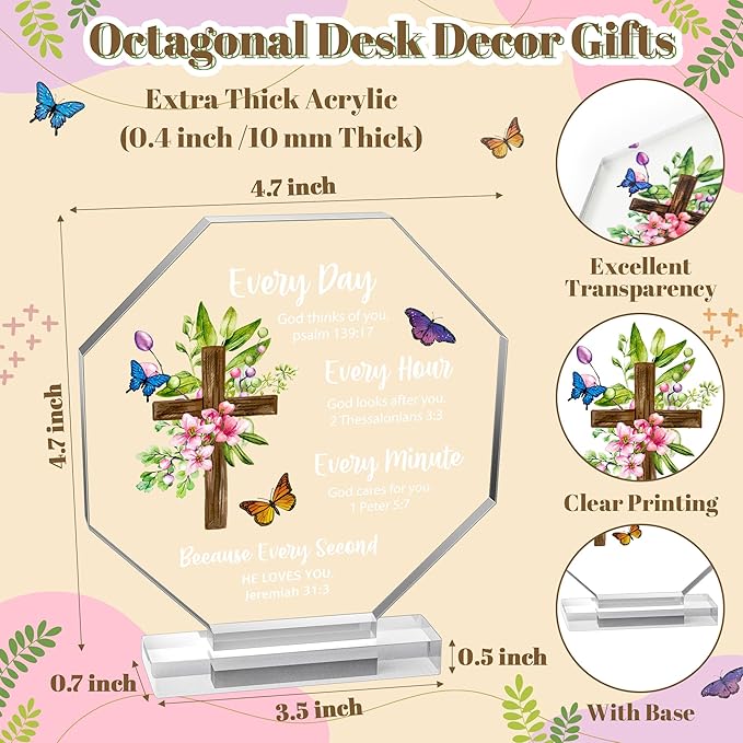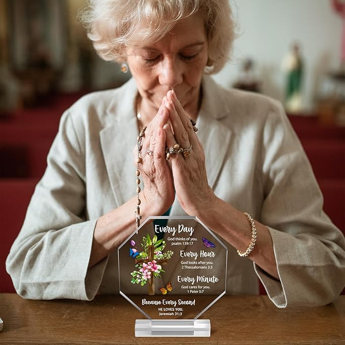 Yopyame Religious Inspirational Acrylic Plaque - Christian Gift with Bible Verse Prayers Scripture for Women Men Cross Acrylic Room Decoration Faith Keepsake Paperweights for Office Desk Home Decor