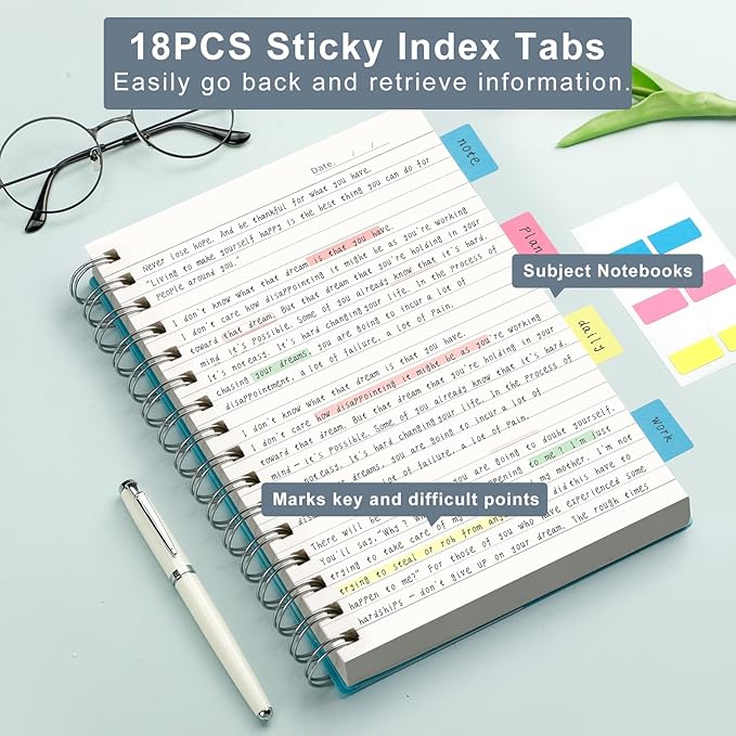 - 300 Pages Spiral Notebook: With 150 sheets/300 pages of classic 7mm college ruled paper, small size 5.7" x 8.22". Provide plenty of writing space for you. With 18 pcs divider sticky notes for better classify and make you more professional