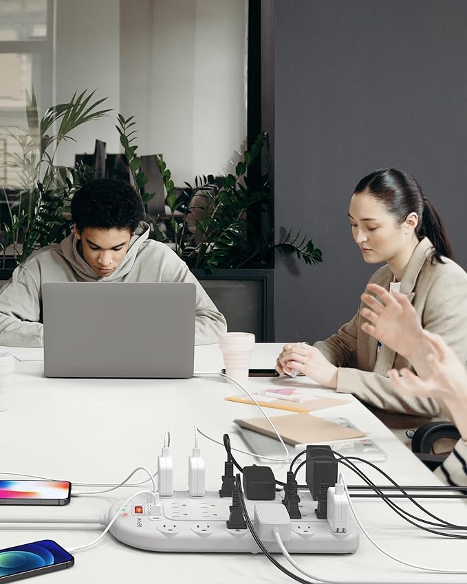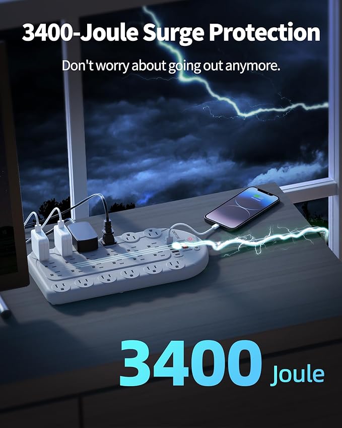 - 【Safeguard Your Devices】-This large power strip has a 3400-Joule energy rating providing a reliable surge protector to protect any meeting room, office, personal workstation, or urround sound system.