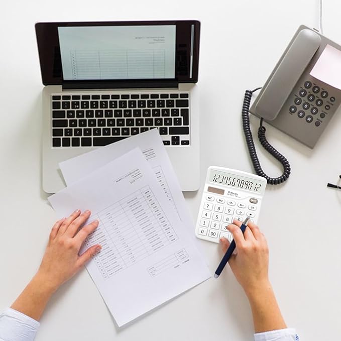Basic Office Desktop Calculator - 12 Digit, Large LCD Display, Sensitive Buttons for White Office Supplies and School Supplies