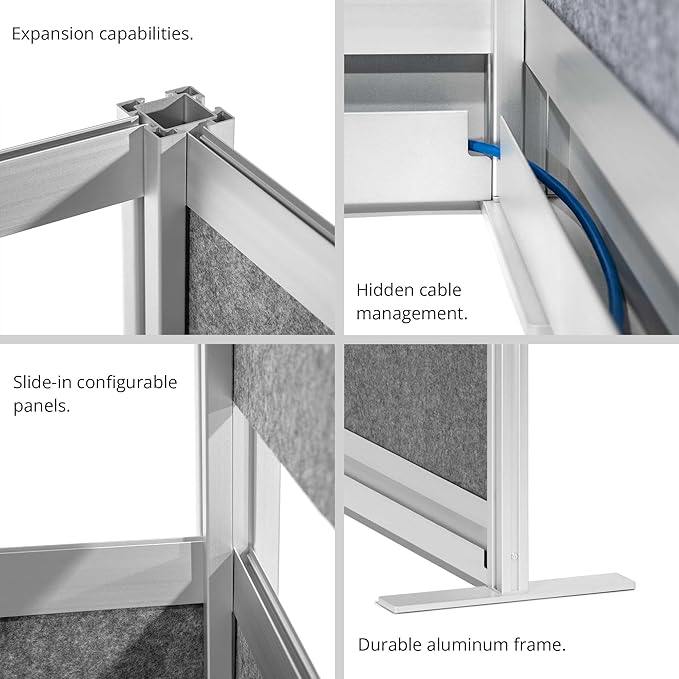 - BUILT TO LAST: With a durable, lightweight aluminum frame and sturdy steel base, these room divider walls are designed for years of dependable use. Integrated cable management trays keep unsightly cords off the floor and out of the way.
