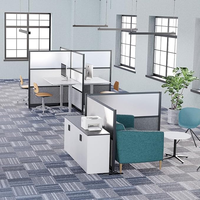 Stand Up Desk Store Workflow Wide Modular Wall | 53'' x 70'' Wall | Expandable Partition Room Divider with Rearrangeable Frosted Acrylic, Sound Absorbent and Whiteboard Panels (Black Frame)