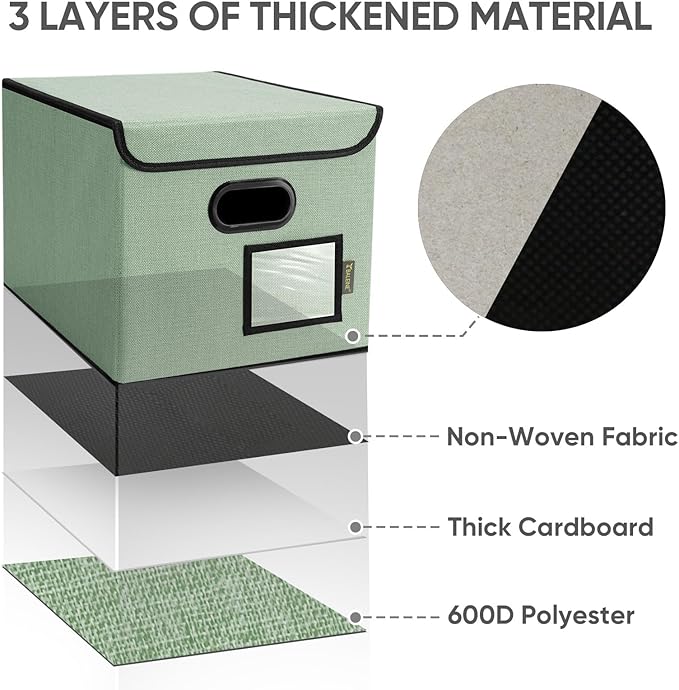 - [OPTIMIZED DESIGN] Designed with convenience in mind, our file storage box helps to elevate your efficiency and organization. The transparent label slot allows for quick identification of the contents stored inside the box. The collapsible design and sturdy handles ensure effortless storage and movement, making it convenient and easy to use.