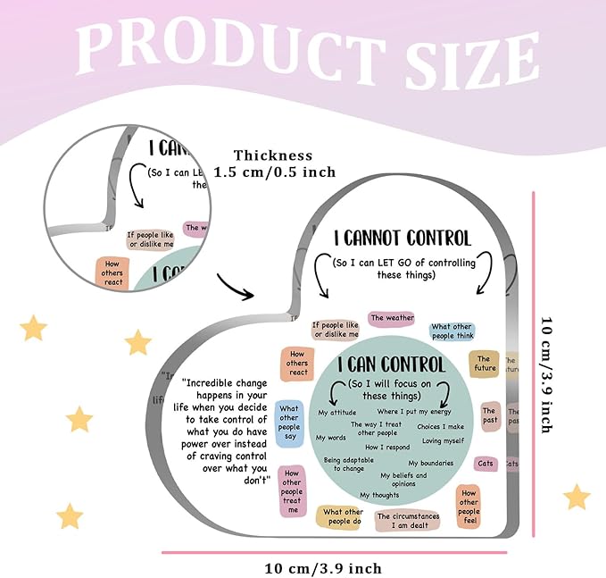 Mental Health Things I Can Control Decor, Mindfulness Decor for Therapy Office Acrylic Heart Gifts, School Counselor Sign Therapist Office Art Decorations for Therapist Office Living Room Bedroom Gift