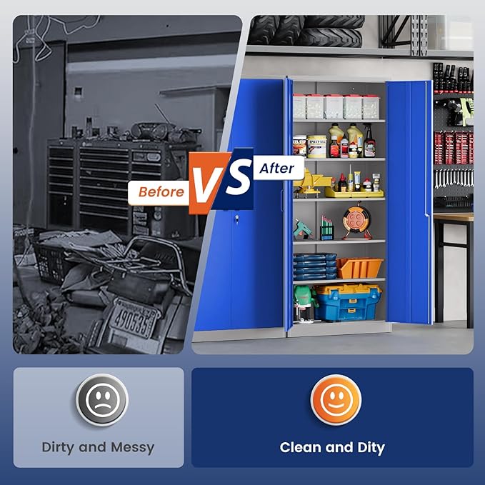 - 『PRACTICAL DESIGN』:Our tall metal cabinet equipped with lock and 5 adjustable shelves to provide adaptability and convenience. High-grade lock picking to secure valuables, two keys are included. Regardless of what your storage needs are, you have the ability to create a unique storage space to suit them.