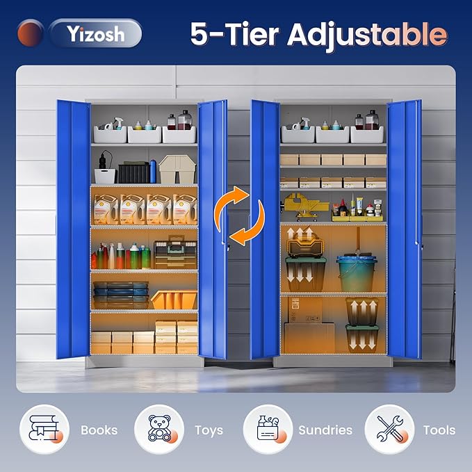Yizosh Metal Garage Storage Cabinet with 2 Doors and 5 Adjustable Shelves - 71" Steel Lockable File Cabinet,Locking Tool Cabinets for Office,Home,Garage,Gym,School (Gray Blue)